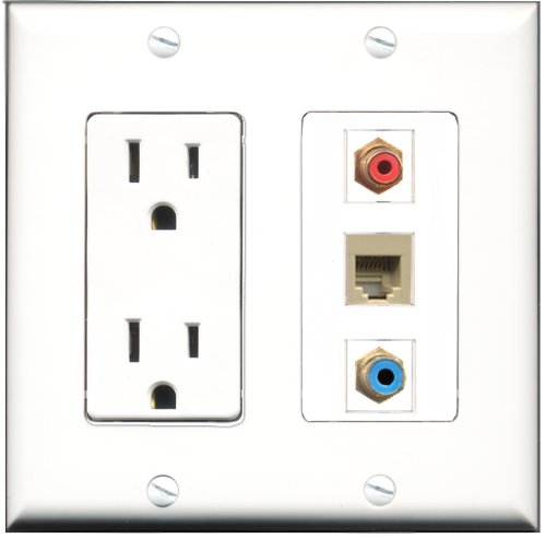 RiteAV - 15 Amp Power Outlet 1 Port RCA Red 1 Port RCA Blue 1 Port Phone Beige Decorative Wall Plate