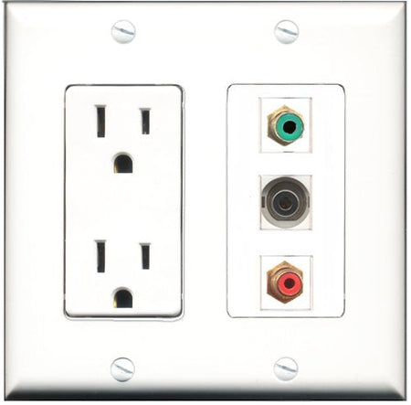 RiteAV - 15 Amp Power Outlet 1 Port RCA Red 1 Port RCA Green 1 Port 3.5mm Decorative Wall Plate