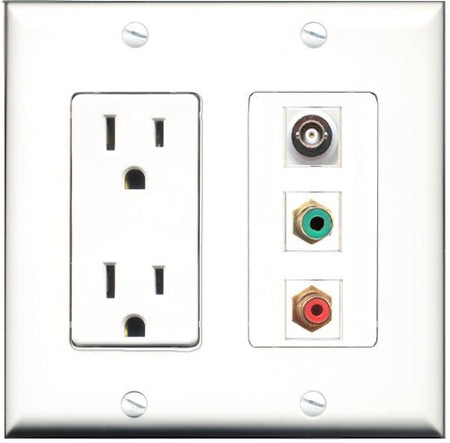 RiteAV - 15 Amp Power Outlet 1 Port RCA Red 1 Port RCA Green 1 Port BNC Decorative Wall Plate