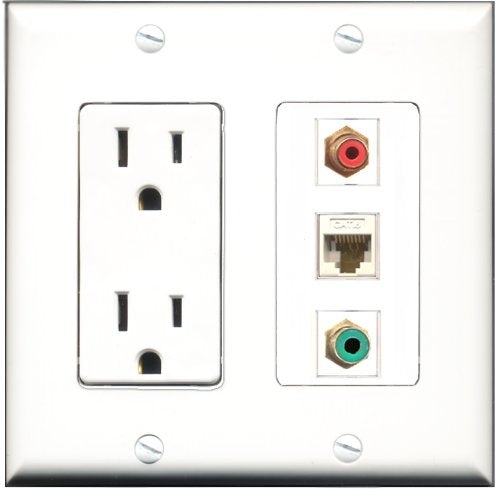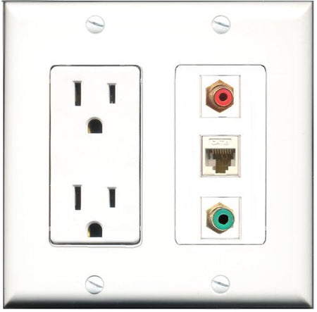 RiteAV - 15 Amp Power Outlet 1 Port RCA Red 1 Port RCA Green 1 Port Cat6 Ethernet Ethernet White Decorative Wall Plate
