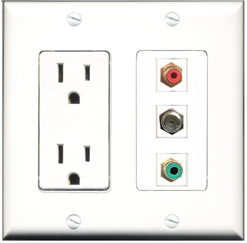 RiteAV - 15 Amp Power Outlet 1 Port RCA Red 1 Port RCA Green 1 Port Coax Decorative Wall Plate