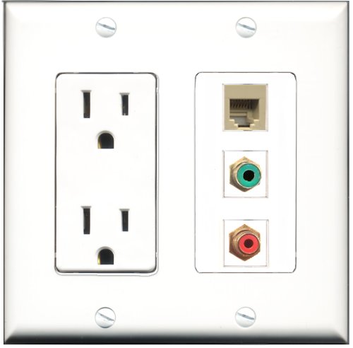 RiteAV - 15 Amp Power Outlet 1 Port RCA Red 1 Port RCA Green 1 Port Phone Beige Decorative Wall Plate