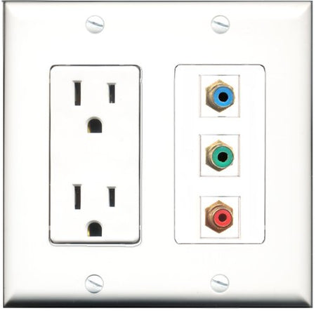 RiteAV - 15 Amp Power Outlet 1 Port RCA Red 1 Port RCA Green 1 Port RCA Blue Decorative Wall Plate