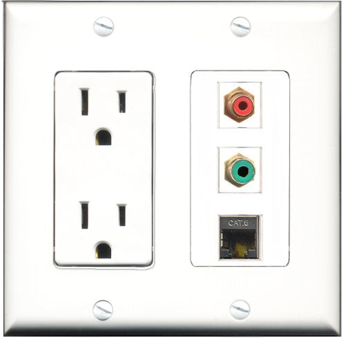 RiteAV - 15 Amp Power Outlet 1 Port RCA Red 1 Port RCA Green 1 Port Shielded Cat6 Ethernet Ethernet Decorative Wall Plate