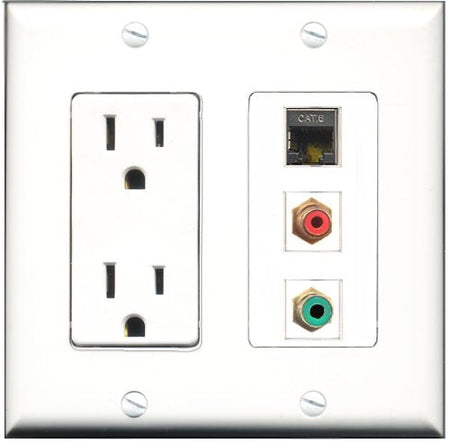 RiteAV - 15 Amp Power Outlet 1 Port RCA Red 1 Port RCA Green 1 Port Shielded Cat6 Ethernet Ethernet Decorative Wall Plate