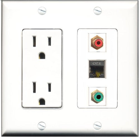 RiteAV - 15 Amp Power Outlet 1 Port RCA Red 1 Port RCA Green 1 Port Shielded Cat6 Ethernet Ethernet Decorative Wall Plate