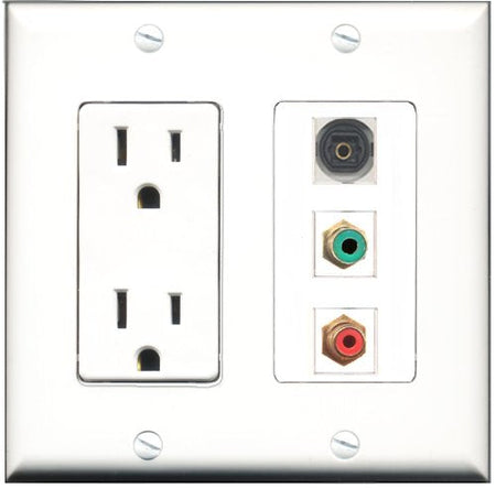 RiteAV - 15 Amp Power Outlet 1 Port RCA Red 1 Port RCA Green 1 Port Toslink Decorative Wall Plate