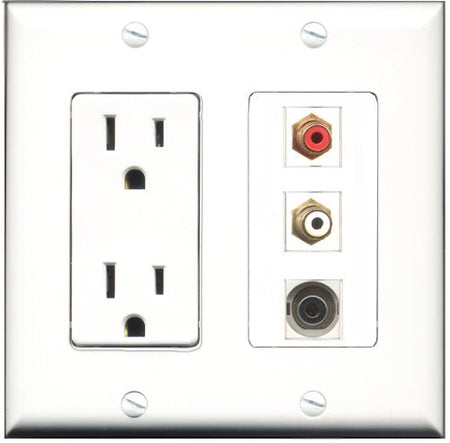 RiteAV - 15 Amp Power Outlet 1 Port RCA Red 1 Port RCA White 1 Port 3.5mm Decorative Wall Plate