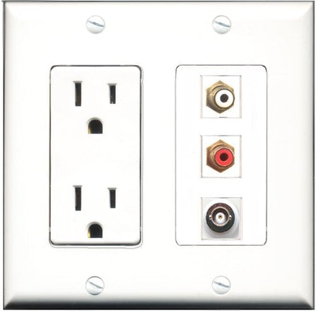 RiteAV - 15 Amp Power Outlet 1 Port RCA Red 1 Port RCA White 1 Port BNC Decorative Wall Plate