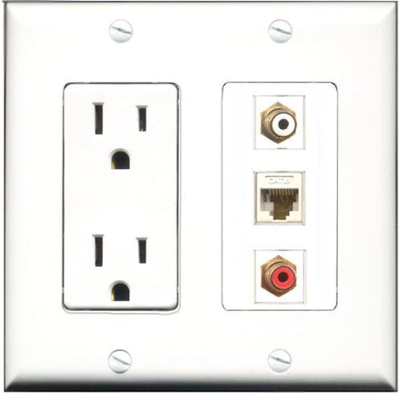 RiteAV - 15 Amp Power Outlet 1 Port RCA Red 1 Port RCA White 1 Port Cat6 Ethernet Ethernet White Decorative Wall Plate