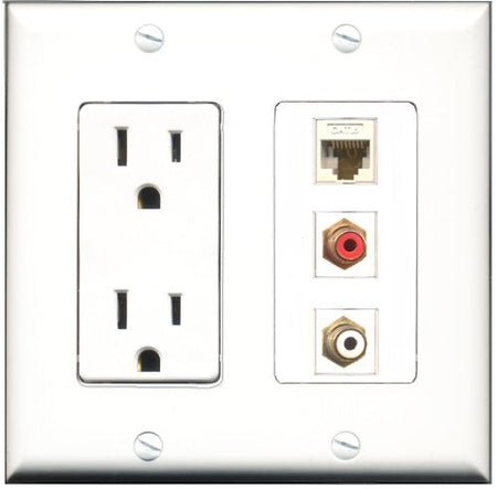 RiteAV - 15 Amp Power Outlet 1 Port RCA Red 1 Port RCA White 1 Port Cat6 Ethernet Ethernet White Decorative Wall Plate