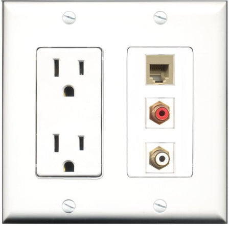 RiteAV - 15 Amp Power Outlet 1 Port RCA Red 1 Port RCA White 1 Port Phone Beige Decorative Wall Plate