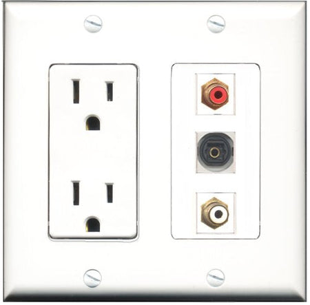 RiteAV - 15 Amp Power Outlet 1 Port RCA Red 1 Port RCA White 1 Port Toslink Decorative Wall Plate