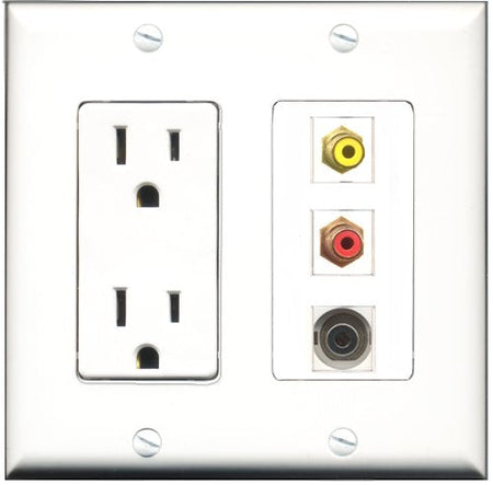 RiteAV - 15 Amp Power Outlet 1 Port RCA Red 1 Port RCA Yellow 1 Port 3.5mm Decorative Wall Plate