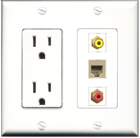 RiteAV - 15 Amp Power Outlet 1 Port RCA Red 1 Port RCA Yellow 1 Port Phone Beige Decorative Wall Plate