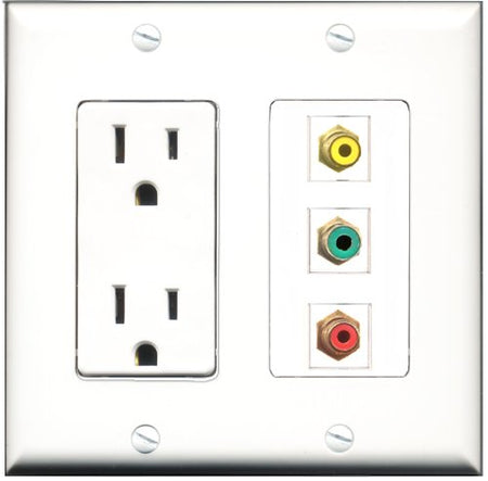 RiteAV - 15 Amp Power Outlet 1 Port RCA Red 1 Port RCA Yellow 1 Port RCA Green Decorative Wall Plate