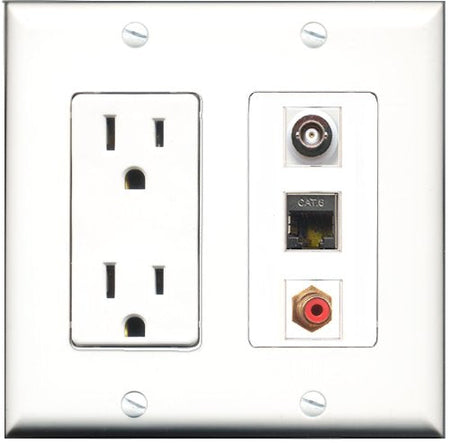 RiteAV - 15 Amp Power Outlet 1 Port RCA Red 1 Port Shielded Cat6 Ethernet Ethernet 1 Port BNC Decorative Wall Plate