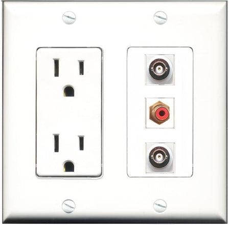RiteAV - 15 Amp Power Outlet 1 Port RCA Red 2 Port BNC Decorative Wall Plate