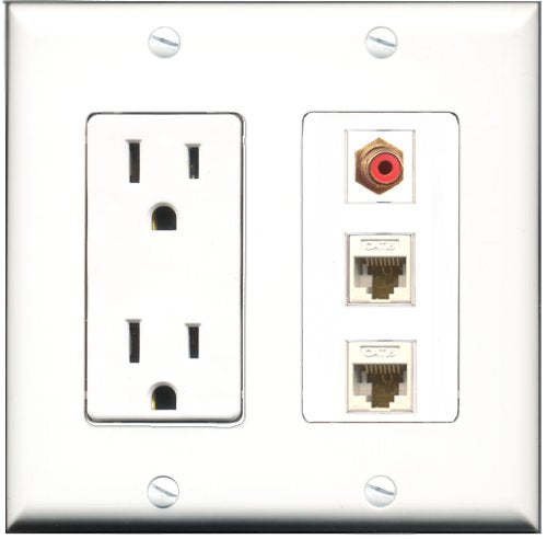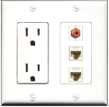 RiteAV - 15 Amp Power Outlet 1 Port RCA Red 2 Port Cat6 Ethernet Ethernet White Decorative Wall Plate
