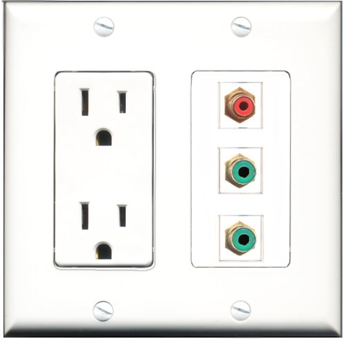 RiteAV - 15 Amp Power Outlet 1 Port RCA Red 2 Port RCA Green Decorative Wall Plate