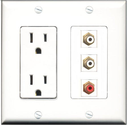 RiteAV - 15 Amp Power Outlet 1 Port RCA Red 2 Port RCA White Decorative Wall Plate