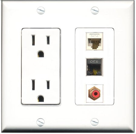 RiteAV - 15 Amp Power Outlet 1 Port RCA Red 2 Port Shielded Cat6 Ethernet Ethernet Decorative Wall Plate