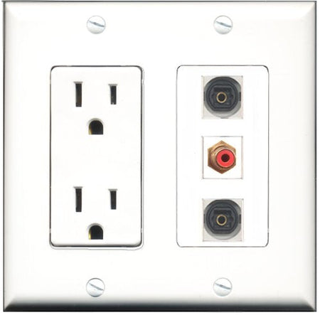 RiteAV - 15 Amp Power Outlet 1 Port RCA Red 2 Port Toslink Decorative Wall Plate