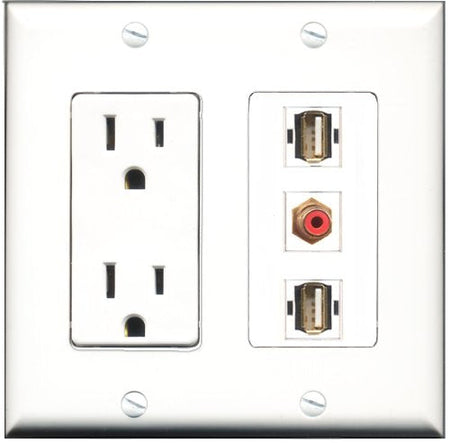 RiteAV - 15 Amp Power Outlet 1 Port RCA Red 2 Port USB A-A Decorative Wall Plate