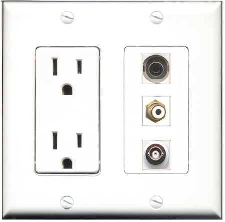 RiteAV - 15 Amp Power Outlet 1 Port RCA White 1 Port 3.5mm 1 Port BNC Decorative Wall Plate