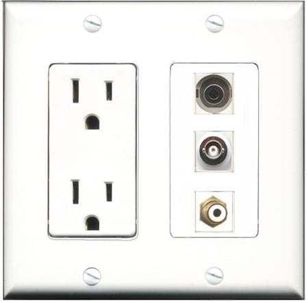 RiteAV - 15 Amp Power Outlet 1 Port RCA White 1 Port 3.5mm 1 Port BNC Decorative Wall Plate