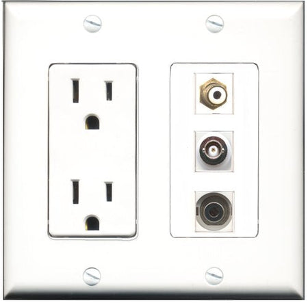 RiteAV - 15 Amp Power Outlet 1 Port RCA White 1 Port 3.5mm 1 Port BNC Decorative Wall Plate