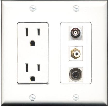RiteAV - 15 Amp Power Outlet 1 Port RCA White 1 Port 3.5mm 1 Port BNC Decorative Wall Plate
