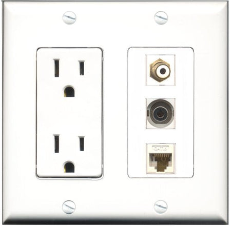 RiteAV - 15 Amp Power Outlet 1 Port RCA White 1 Port 3.5mm 1 Port Cat6 Ethernet Ethernet White Decorative Wall Plate
