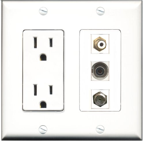 RiteAV - 15 Amp Power Outlet 1 Port RCA White 1 Port Coax 1 Port 3.5mm Decorative Wall Plate