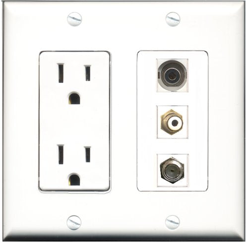 RiteAV - 15 Amp Power Outlet 1 Port RCA White 1 Port Coax 1 Port 3.5mm Decorative Wall Plate