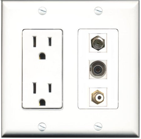 RiteAV - 15 Amp Power Outlet 1 Port RCA White 1 Port Coax 1 Port 3.5mm Decorative Wall Plate