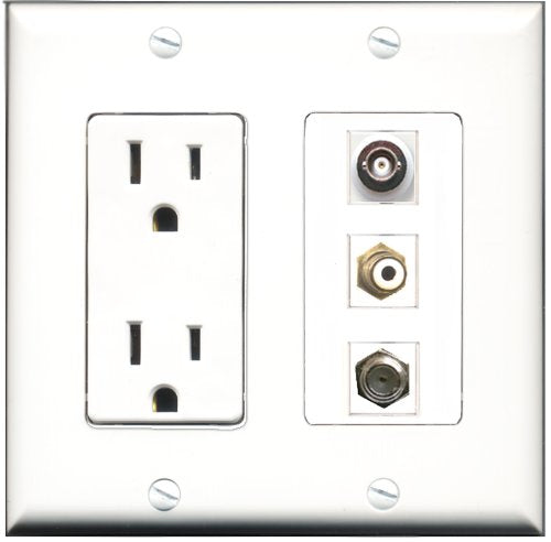 RiteAV - 15 Amp Power Outlet 1 Port RCA White 1 Port Coax 1 Port BNC Decorative Wall Plate