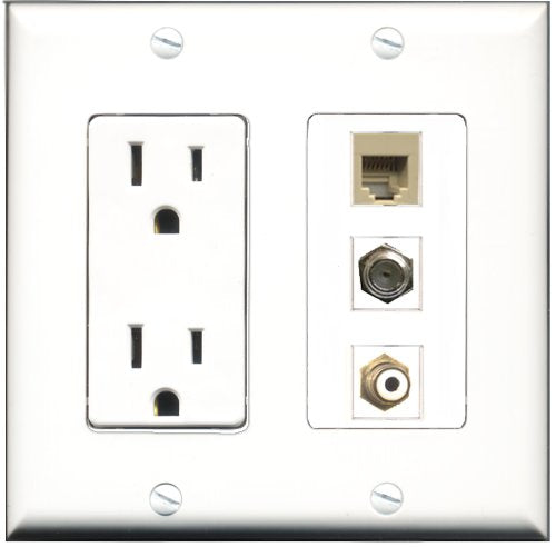 RiteAV - 15 Amp Power Outlet 1 Port RCA White 1 Port Coax 1 Port Phone Beige Decorative Wall Plate