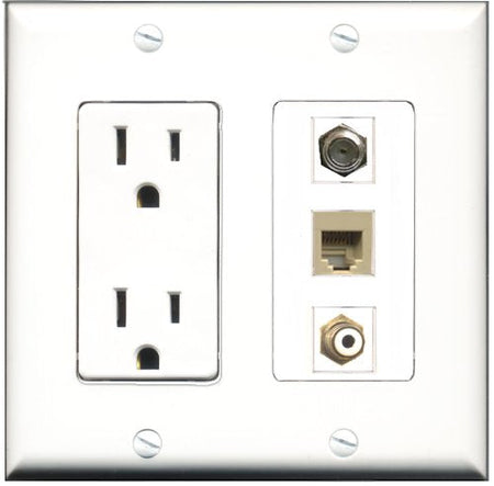 RiteAV - 15 Amp Power Outlet 1 Port RCA White 1 Port Coax 1 Port Phone Beige Decorative Wall Plate