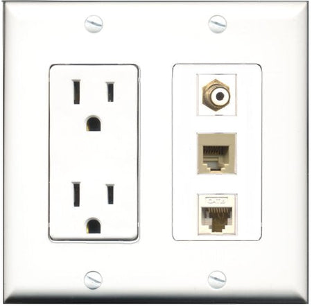 RiteAV - 15 Amp Power Outlet 1 Port RCA White 1 Port Phone Beige 1 Port Cat6 Ethernet Ethernet White Decorative Wall Plate