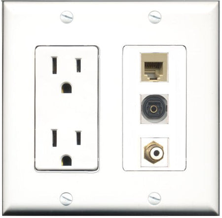 RiteAV - 15 Amp Power Outlet 1 Port RCA White 1 Port Phone Beige 1 Port Toslink Decorative Wall Plate