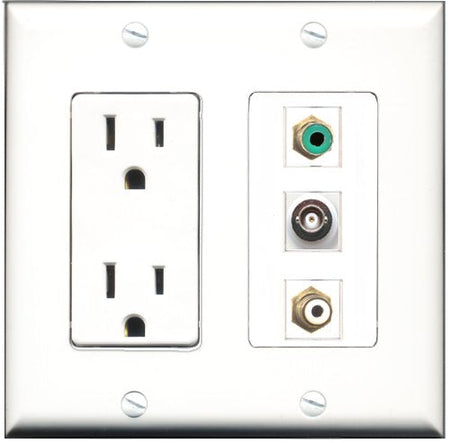 RiteAV - 15 Amp Power Outlet 1 Port RCA White 1 Port RCA Green 1 Port BNC Decorative Wall Plate