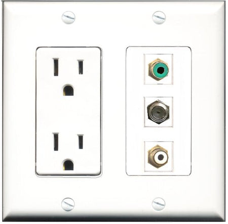 RiteAV - 15 Amp Power Outlet 1 Port RCA White 1 Port RCA Green 1 Port Coax Decorative Wall Plate