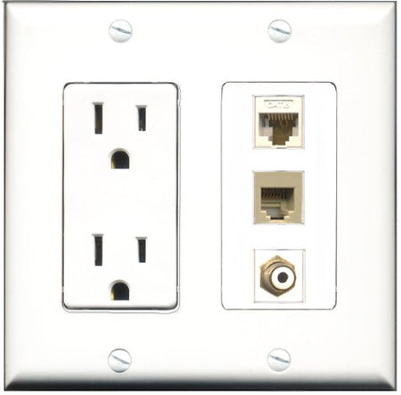 RiteAV - 15 Amp Power Outlet 1 Port RCA White 1 Port RCA Yellow 1 Port Phone Beige Decorative Wall Plate