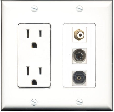 RiteAV - 15 Amp Power Outlet 1 Port RCA White 1 Port Toslink 1 Port 3.5mm Decorative Wall Plate