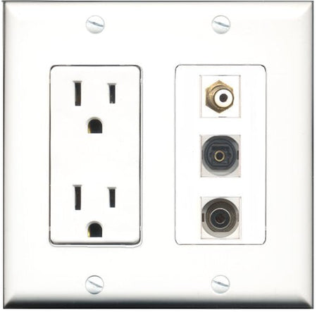 RiteAV - 15 Amp Power Outlet 1 Port RCA White 1 Port Toslink 1 Port 3.5mm Decorative Wall Plate