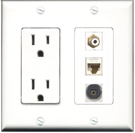 RiteAV - 15 Amp Power Outlet 1 Port RCA White 1 Port Toslink 1 Port Cat6 Ethernet Ethernet White Decorative Wall Plate