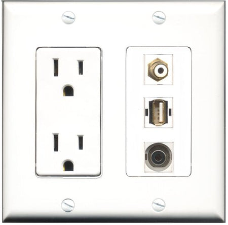 RiteAV - 15 Amp Power Outlet 1 Port RCA White 1 Port USB A-A 1 Port 3.5mm Decorative Wall Plate
