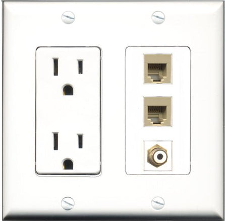 RiteAV - 15 Amp Power Outlet 1 Port RCA White 2 Port Phone Beige Decorative Wall Plate