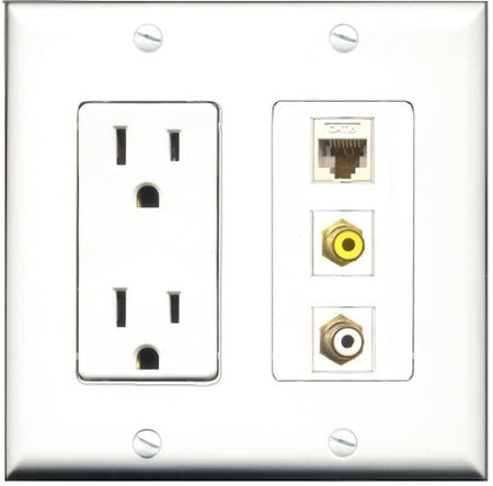 RiteAV - 15 Amp Power Outlet 1 Port RCA White 2 Port RCA Yellow Decorative Wall Plate
